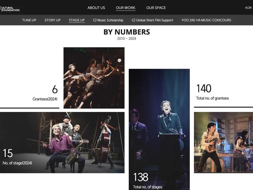 CJ ENM 是韓國最大娛樂集團之一,其「Stage Up」計畫即扮演「孵化最終段」的角色,為有基礎的創作案提供開發資金與製作人媒合,我們訪問了負責計劃執行的 PDs Group 的 김민정(Kim Minjung) 製作人,分享了這個計劃的規模: 每年平均有高達一百件的以上原創全本音樂劇申請CJ Stage UP計畫,2025 年更突破一百二十件。
