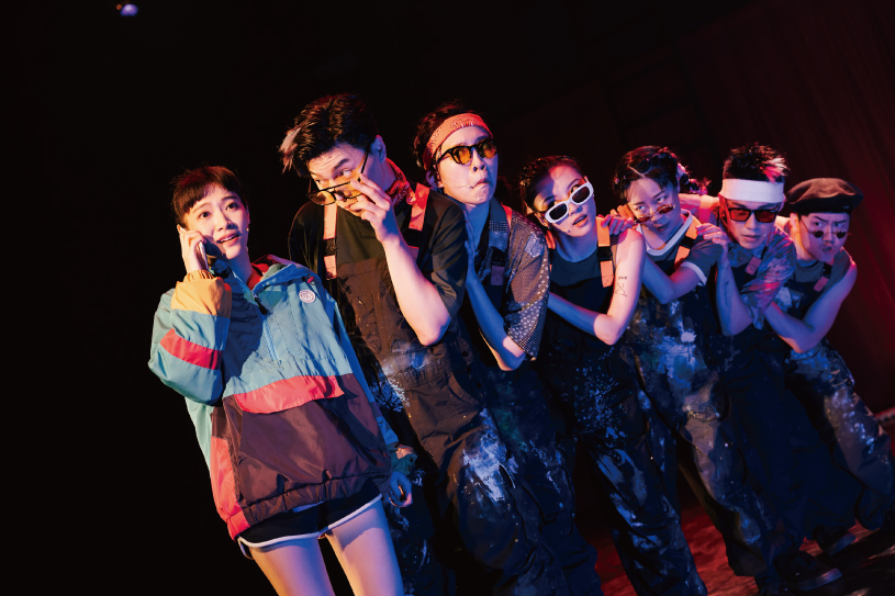 整場演出由歌隊整齊劃一的動作拉開序幕——女主角陳靜(康雅婷飾)與男主角陳柏青(周家寬飾)身著明黃色與深藍色雨衣,是其中最鮮明的存在。