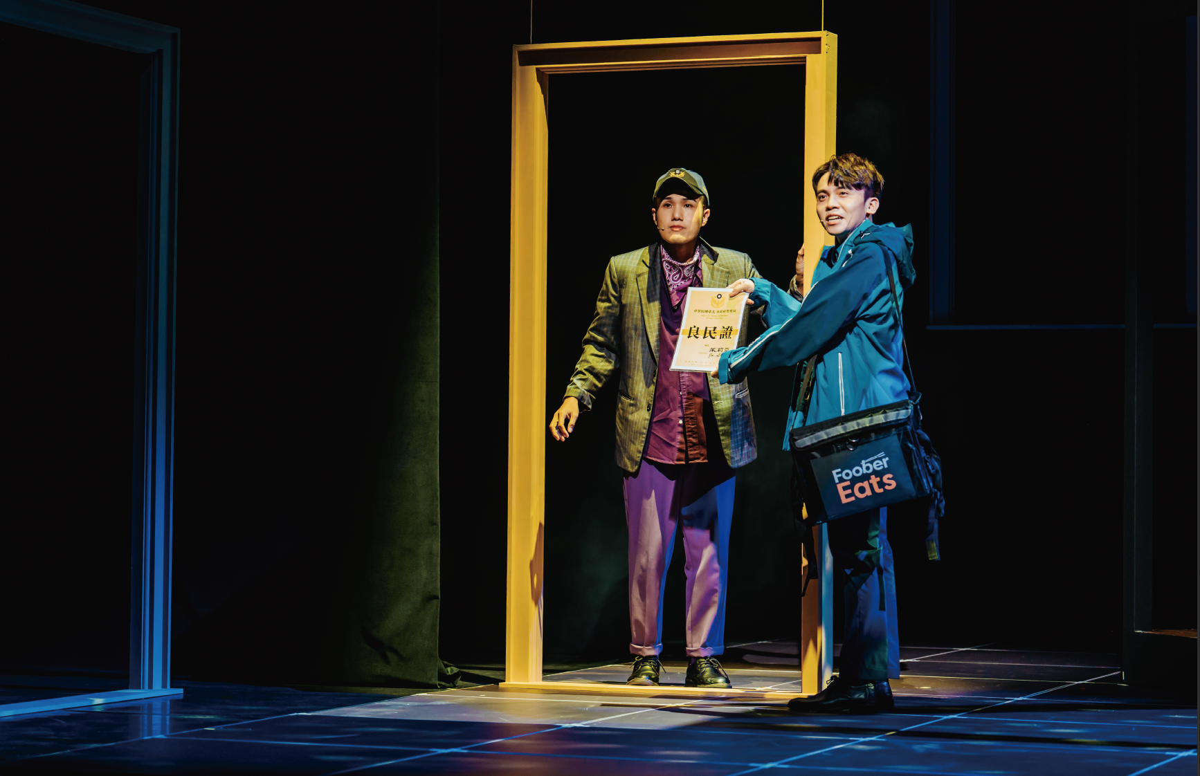 《今晚,我想來點》,從這個取自外送平台廣告slogan的劇名來看,就看得出此齣音樂劇的玩心。《今晚,我想來點》的結構與發想,源於導演高天恒十三年前的大學畢製(註一),他一直想將「時間穿梭」概念放進音樂劇裡。也因此《今晚,我想來點》以多人視角講述同一事件的視角切換,成為這個故事最有趣的轉折:在第一幕就登場的角色,觀眾要到故事中段才會知道這角色在第一幕的所思所感(或者該說,內心碎碎唸):從「帥氣」到「三八」之間的個性轉折,成為《今晚,我想來點》最有意思的笑點。