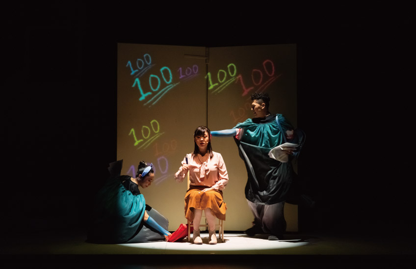 除此之外,演員表現與演出調度也相當令人驚豔,像是精靈王國進入人類世界時,是用布偶展現精靈形體之小,操偶者的活動也融入了精靈角色中,具體展現兩個世界的差距;媽媽、高百晟與繪繪三個主要角色,都有十分亮眼的主題歌曲,加上登場表現能讓人輕易聯想到小S的「老師」,娛樂十足地建立起角色個性,三位群戲演員除了展現出同學的同儕壓力外,最終以他們像是「附身」的方式,表現出「女神」的來到,是在控制演員數量中,相當具有效果的手法。