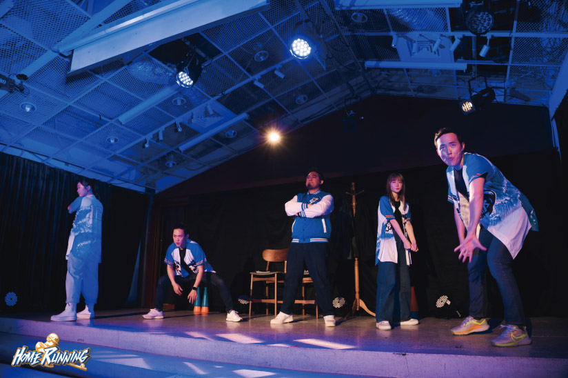《HOME RUNning》由林伯龍編劇、盛涵作曲,自王牌投手與媒體公關兩名主要角色之間關係開展,帶入台灣棒球發展、國際賽屢創佳績、職棒假球醜聞等事件,也連帶觸及了職業運動一方面既具有群眾號召力,卻又須服膺於出資方/商業單位的複雜角力(劇場觀眾應該也深感熟悉)。劇中音樂形式多變,rap、聖歌等曲風搭配相應場景,很是貼切。用歌曲對話交代背景知識(棒球規則、術語等),也相當活潑有趣。