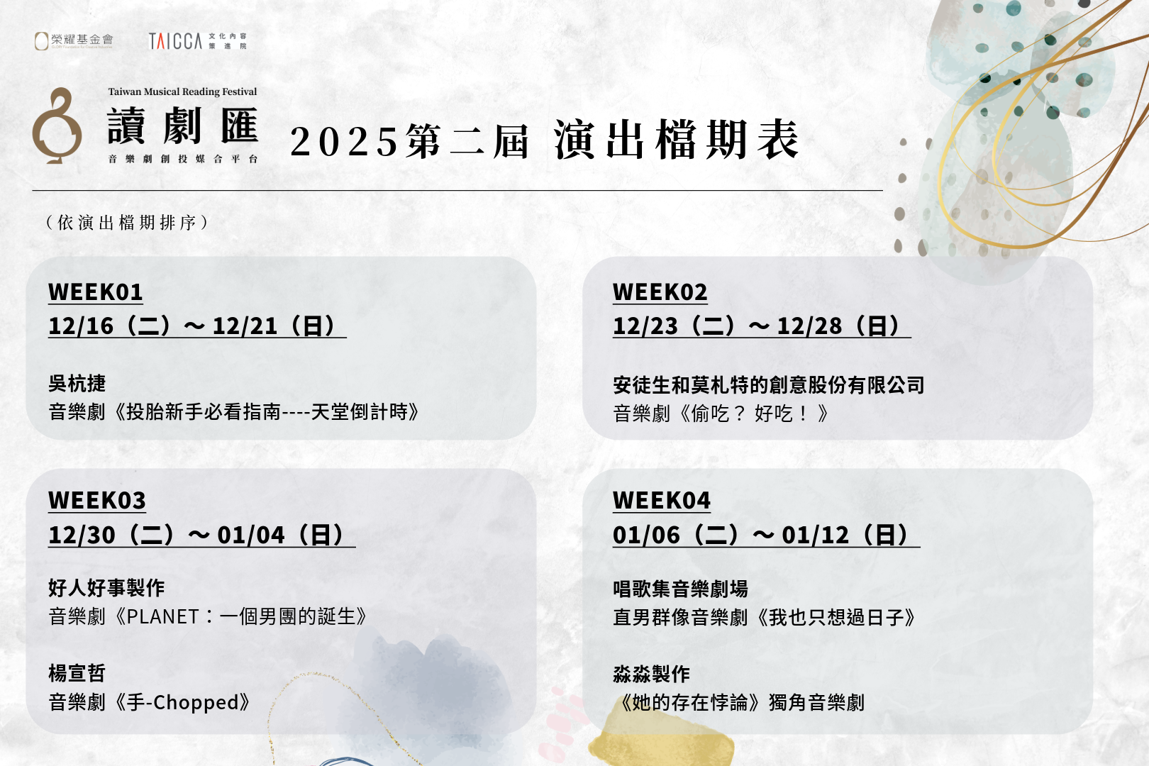第二屆「讀劇匯—音樂劇創投媒合平台」,共同攜手打造屬於臺灣音樂劇的精彩未來!